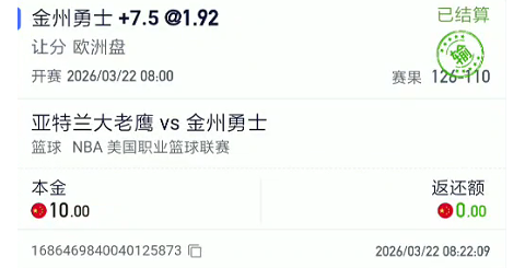 下注勇士又给输了