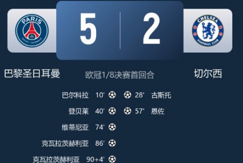 巴黎主场攻势凌厉,锋线群状态火热;切尔西
